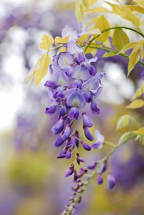 紫藤花的花朵小巧,花型較為清新,淡紫色的花色,猶如一只蝴蝶,因此紫藤花屬蝶形花科植物。擁有朱藤,藤蘿等別名。